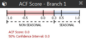 ACF Scores. Auto-correlation Function. Displays visually how the seasonal and non-seasonal scores were determined. For more information, see About ACF Scores below. |